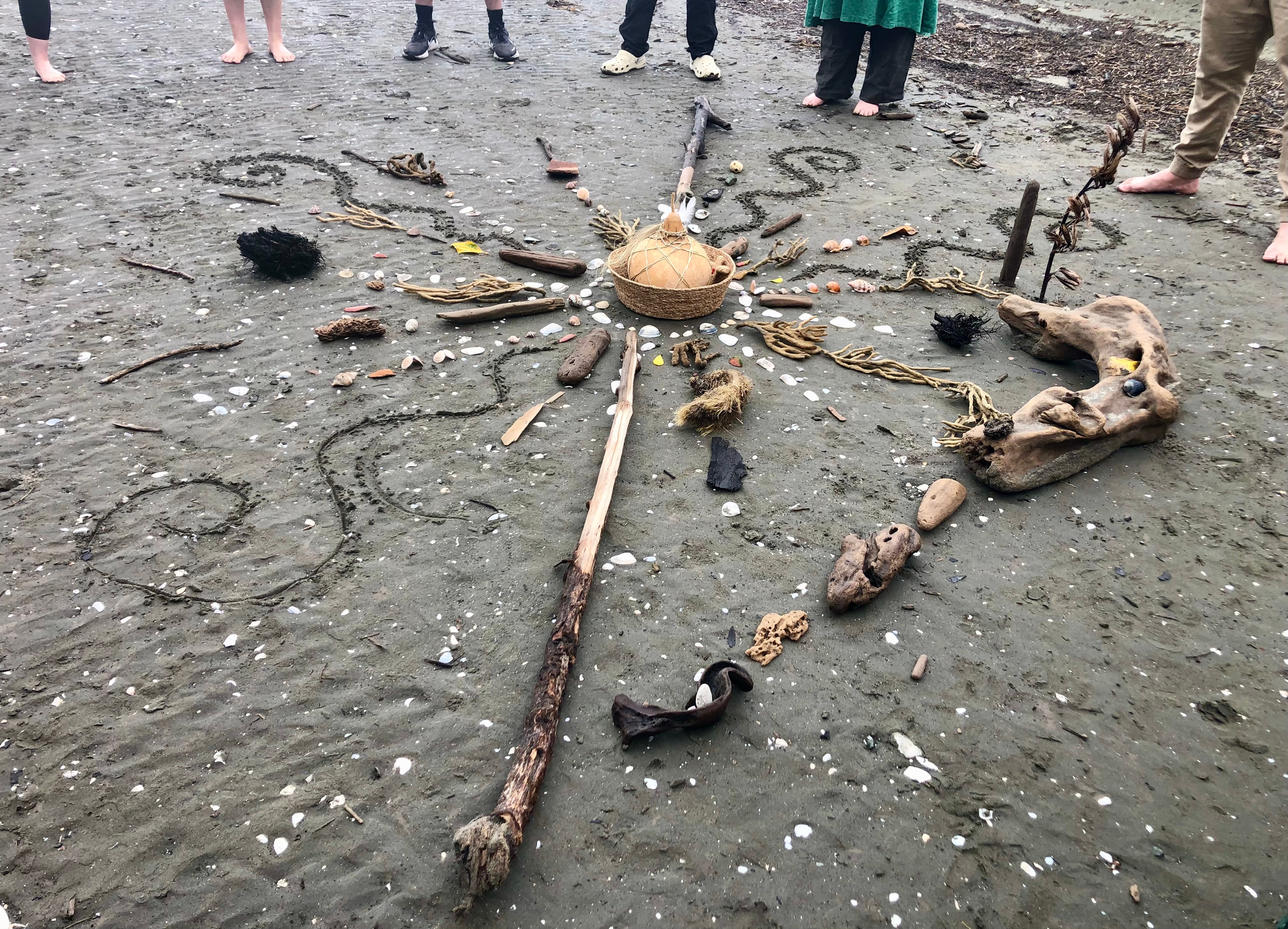This workshop was designed to connect our living selves with the living stories of te Wharemauku, a collective activation of mauri in relation to this sacred waterway.